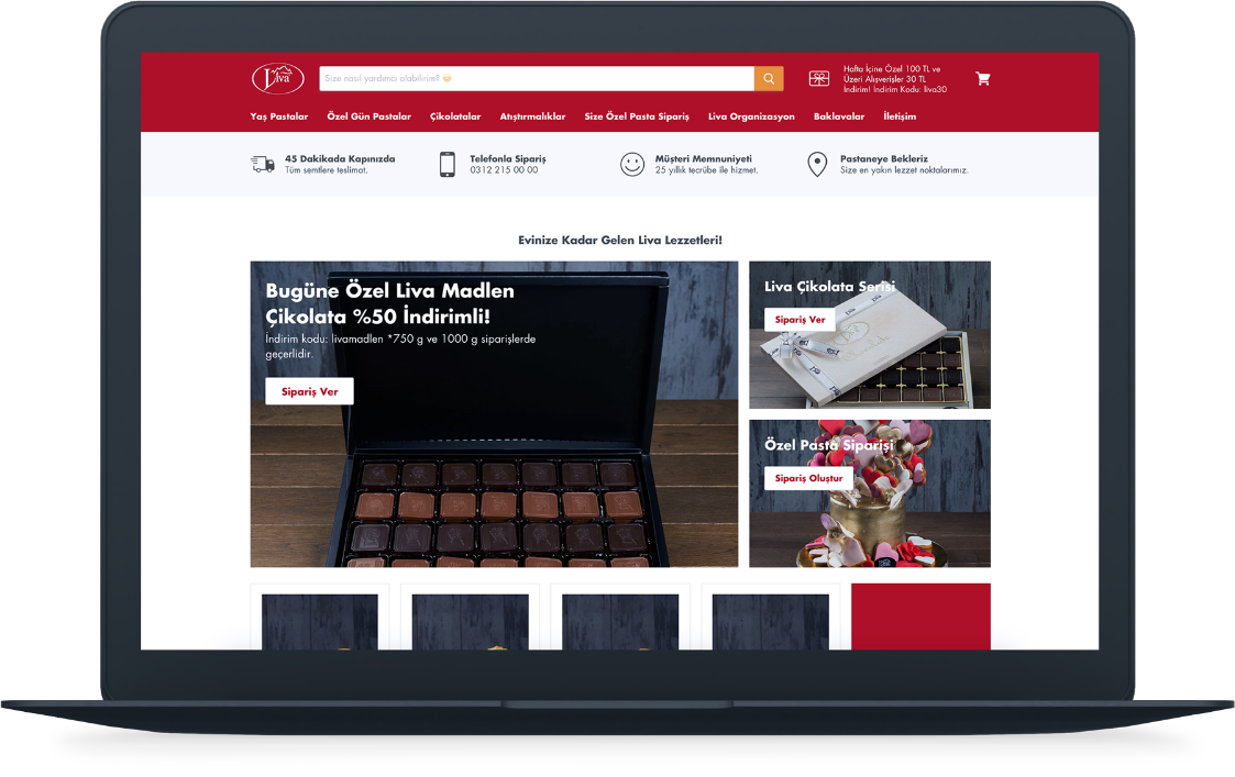 The Shopify e-commerce infrastructure, which was continuously updated and developed by more than 2000 employees, was preferred for the Liva Pastry e-commerce website created from scratch.