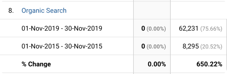 650% increase in organic traffic for target words in 4 years.